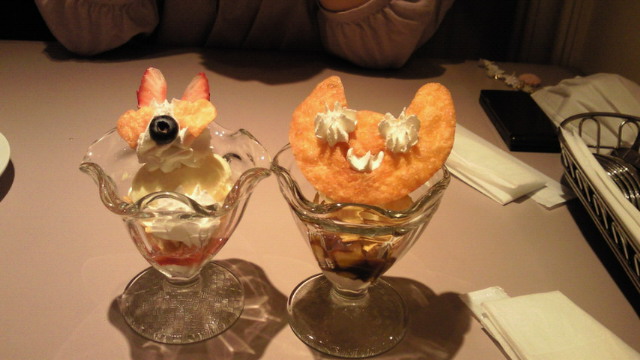 写真はホワイトラビットパフェとチェシャ猫パフェ。